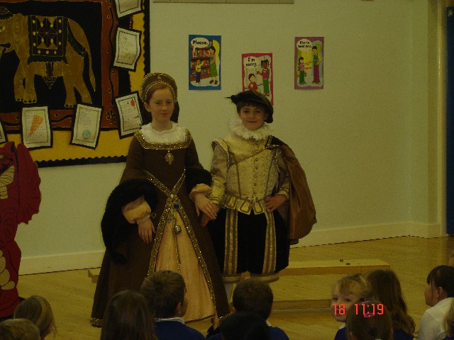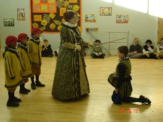 Elizabeth the First! The children dressed up as courtiers, jesters,